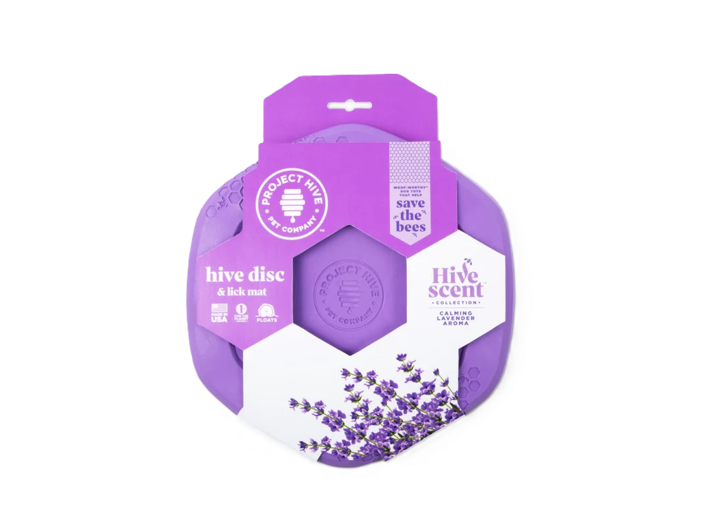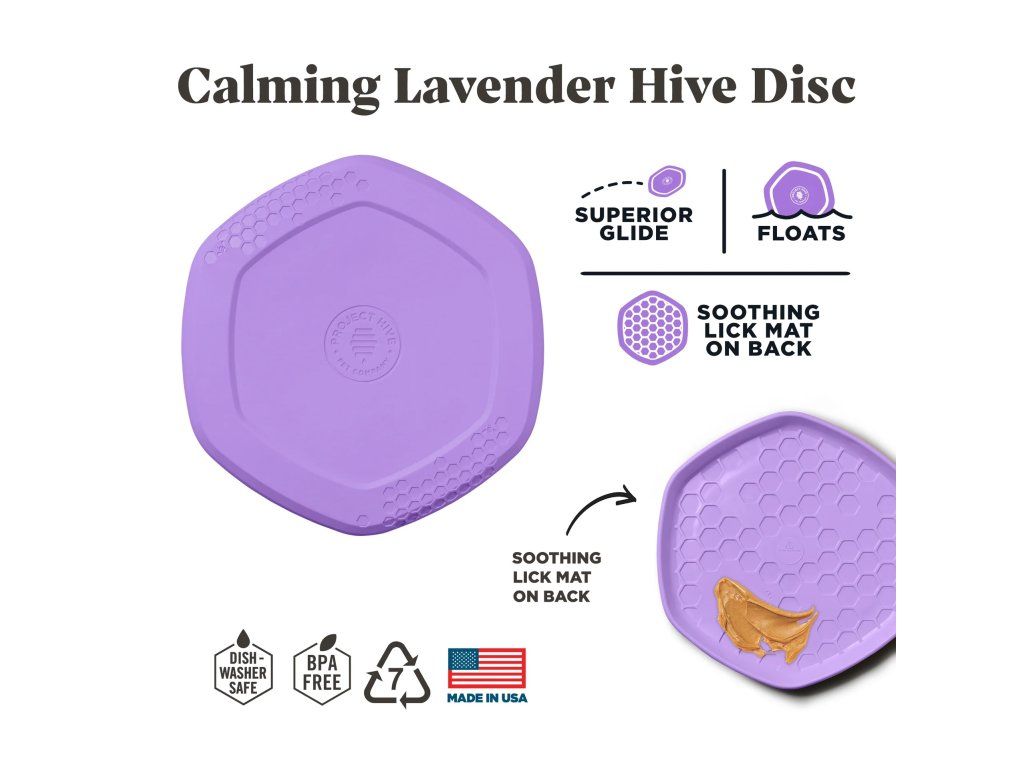 Flip it over! The back of the Dog Disc is a soothing lick mat. Apply a spreadable treat (like peanut butter, cheese, or yogurt) to the textured honeycomb pattern to help relieve anxiety and calm your dog. Dogs’ highly developed sense of smell plays a major role in their well-being, and providing dogs with scented toys fulfills a key enrichment need. The Lavender scent can further engage your dog during play or cuddle time.