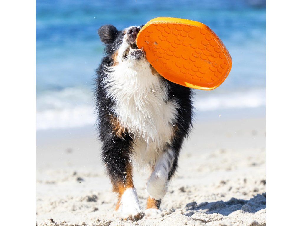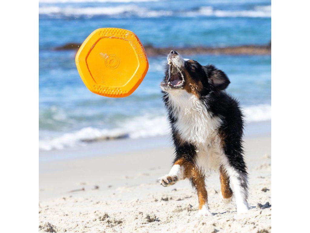 Our mango-scented Dog Disc will be your dog’s new favorite flyer! Made in the USA, the Dog Disc’s superb glide makes it perfect for dogs who love retrieving games. Its soft and flexible material is gentle on dogs’ teeth and gums. The Disc's bright color makes it easy for you and your dog to find indoors and outdoors. And if your pup loves the water, the Dog Disc floats for refreshing games of fetch in the lake or pool!