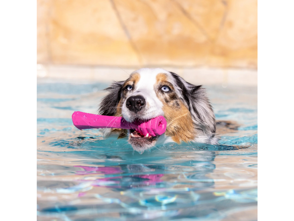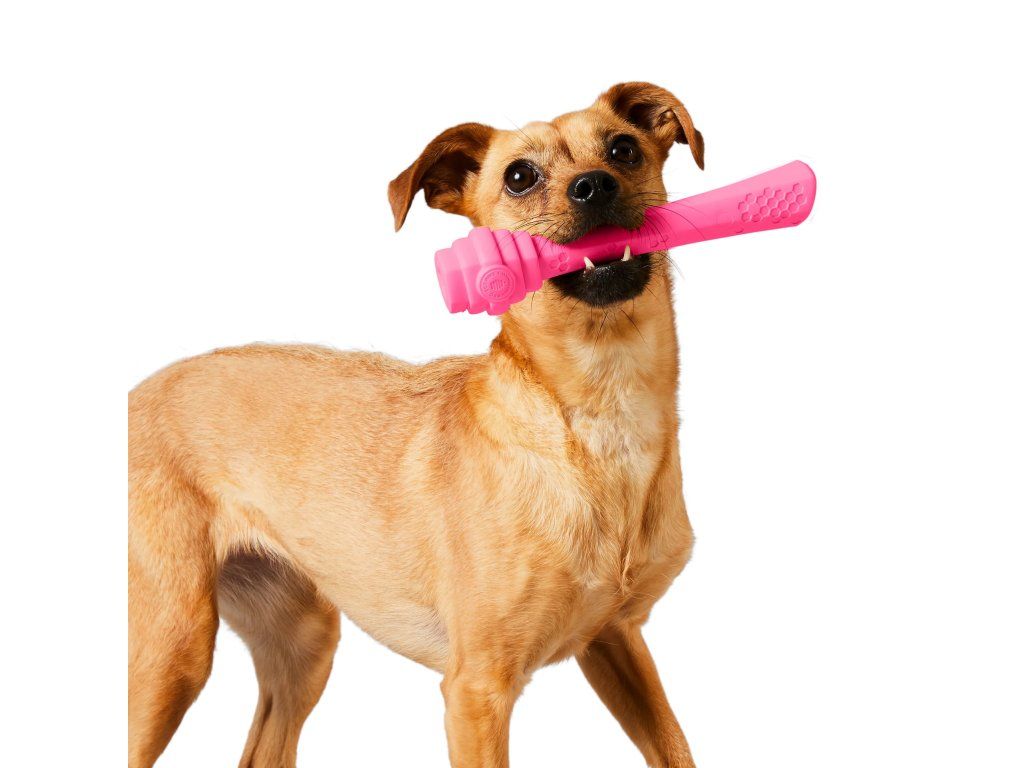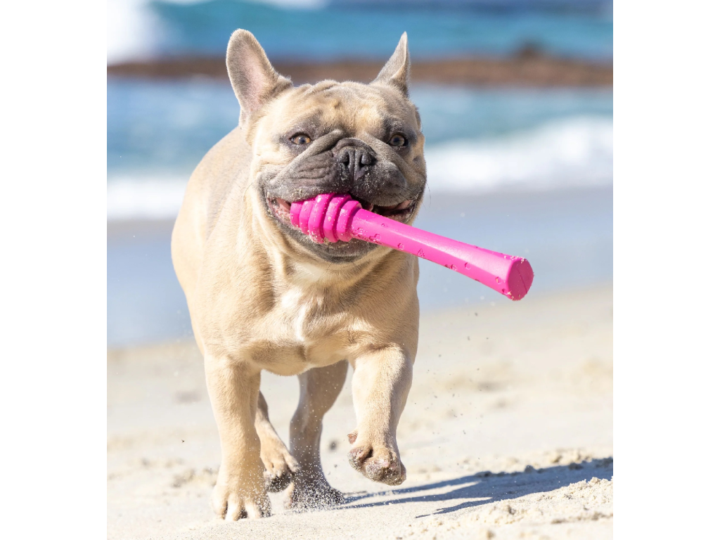 This wild berry-scented Chew Stick will be your dog’s new favorite toy! Made in the USA, the Chew Stick is bouncy, durable, and super engaging! Dogs love to gnaw on the honey-dipper shape, which promotes healthy teeth and gums. They can easily carry it in their mouths without the risks of a natural stick, which can hurt your pup’s mouth and digestive system. The Chew Stick’s bright color is easy for you and your dog to spot indoors, on land, or floating in water.